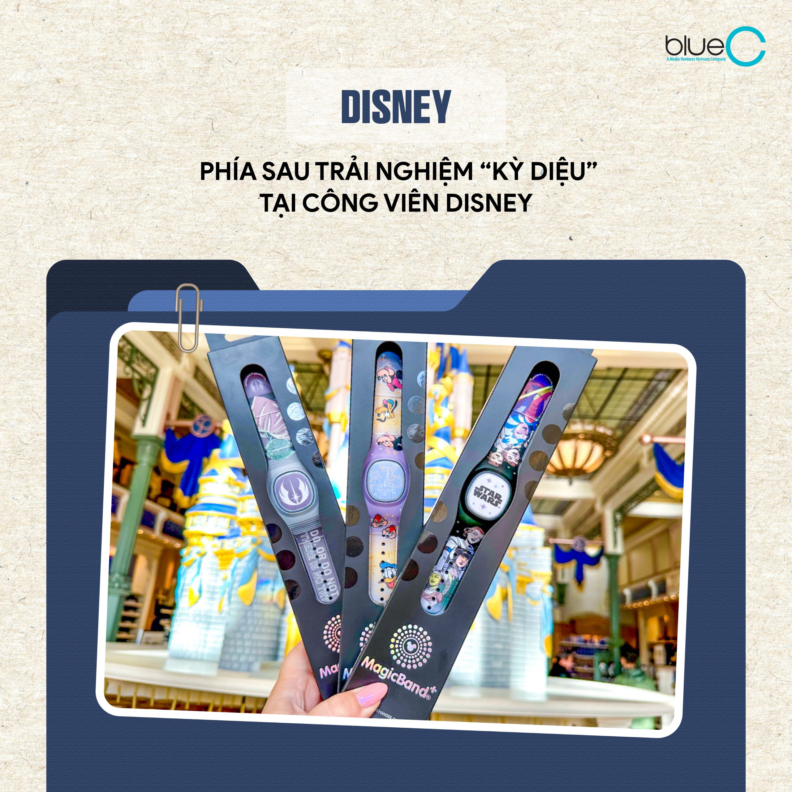 MagicBand hoạt động như một “chìa khóa đa năng”: du khách có thể vào cổng công viên, mở cửa phòng khách sạn, đặt chỗ trò chơi và thanh toán chỉ bằng một thao tác quét. Hành trình của mỗi người cũng được chuẩn bị từ trước khi chuyến đi bắt đầu, khi du khách đặt vé và chọn các hoạt động yêu thích. Quan trọng hơn, hệ thống này giúp Disney thu thập dữ liệu về cách du khách di chuyển, thời gian chờ tại các trò chơi và hành vi chi tiêu trong công viên. Những dữ liệu này cho phép Disney tối ưu vận hành, giảm thời gian xếp hàng và thiết kế trải nghiệm thuận tiện hơn.