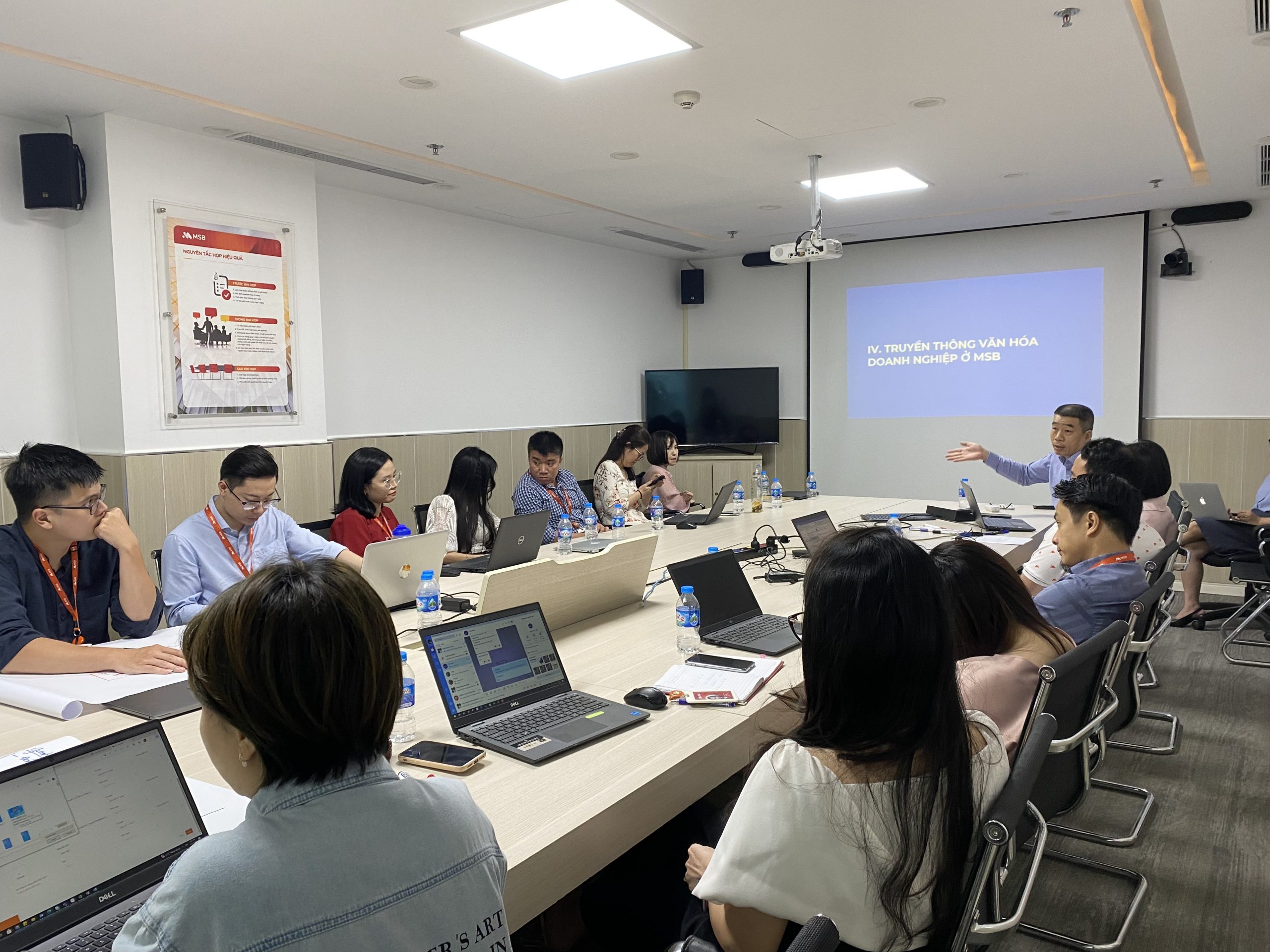 Trước đó, buổi đào tạo dành cho nhóm thực thi VHDN cũng đã được trực tiếp chia sẻ bởi hai chuyên gia (ông Lê Quang Vũ – Giám đốc Blue C và bà Nguyễn Mai Phương – Phó giám đốc Blue C). Thông qua các case study và những kinh nghiệm thực tế, đội ngũ Ban Văn hóa Doanh nghiệp MSB đã được truyền cảm hứng để thực thi VHDN một cách linh hoạt và sáng tạo.