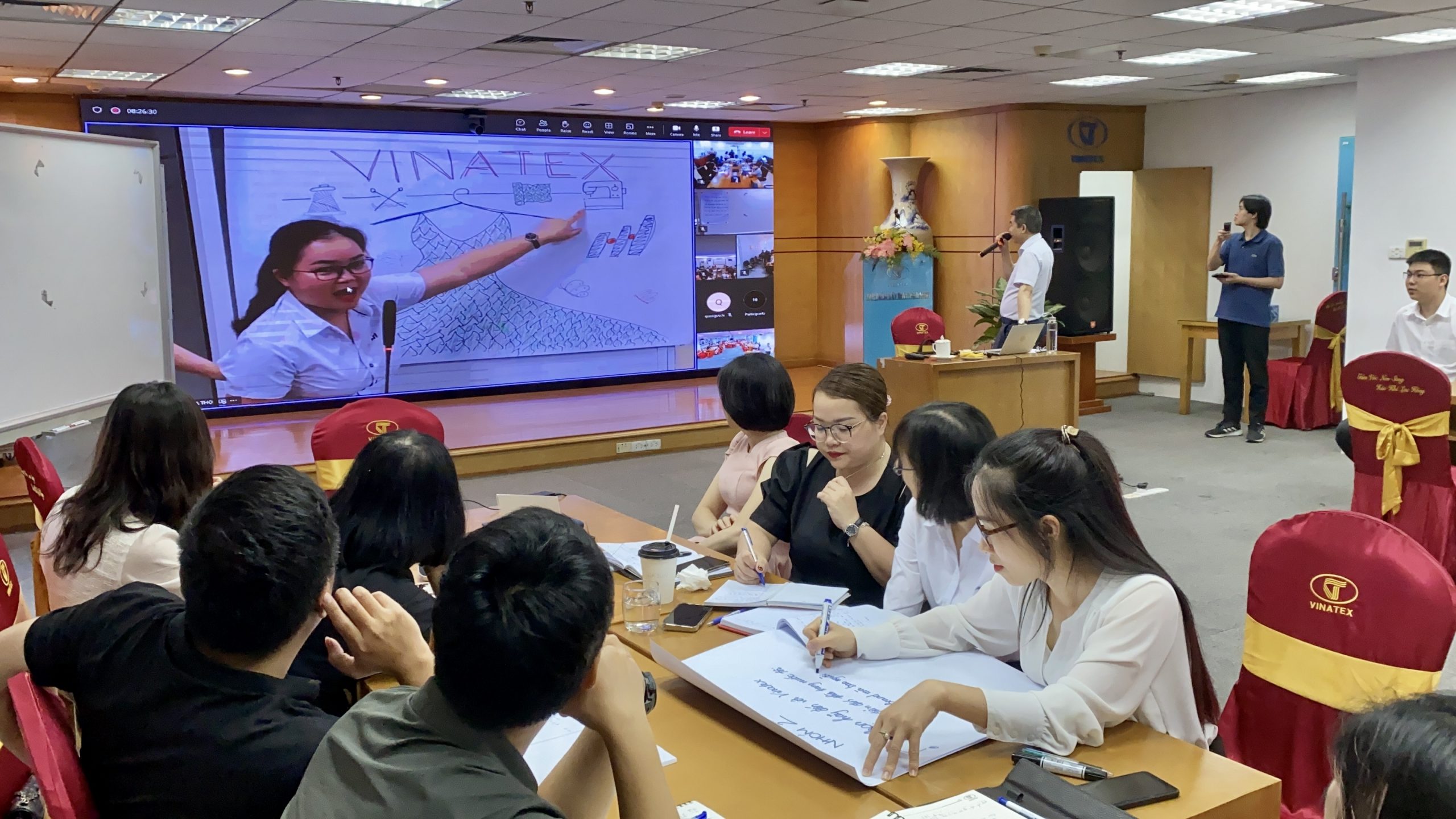 Sự tương tác tích cực và trao đổi ý kiến trong buổi đào tạo đã nhận được sự đánh giá cao từ các học viên. Không chỉ các cán bộ trẻ tham dự trực tiếp, mà cả những học viên tham gia trực tuyến cũng tích cực tham gia vào các hoạt động thực hành để áp dụng những kiến thức đã học. Mọi người đã nhiệt tình trình bày các hình ảnh, bài thơ hay tranh vẽ khi được yêu cầu thực hiện một bài tập về mã hóa thông điệp truyền thông cho Vinatex.