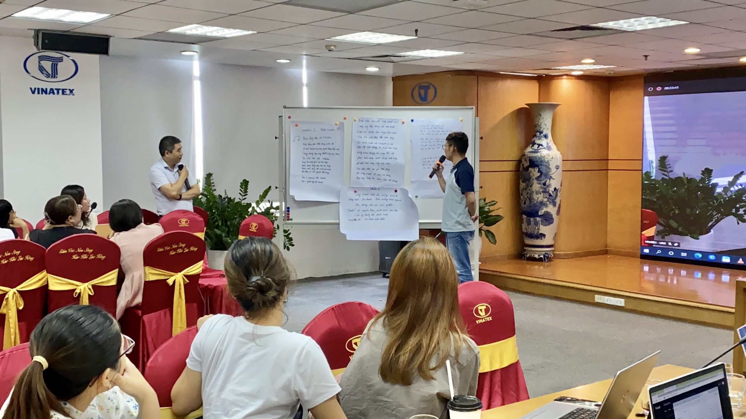 Buổi đào tạo này không chỉ đơn thuần là việc truyền đạt kiến thức lý thuyết, mà còn tạo cơ hội cho các học viên thực hành và áp dụng những khái niệm vào thực tế. Điều này giúp họ nắm vững các công cụ và kỹ năng truyền thông nội bộ, từ đó tạo ra những thông điệp sáng tạo và hiệu quả cho Vinatex. Đặc biệt là nhận ra vai trò quan trọng của truyền thông nội bộ trong việc xây dựng một hình ảnh đồng nhất và một môi trường làm việc gắn kết.