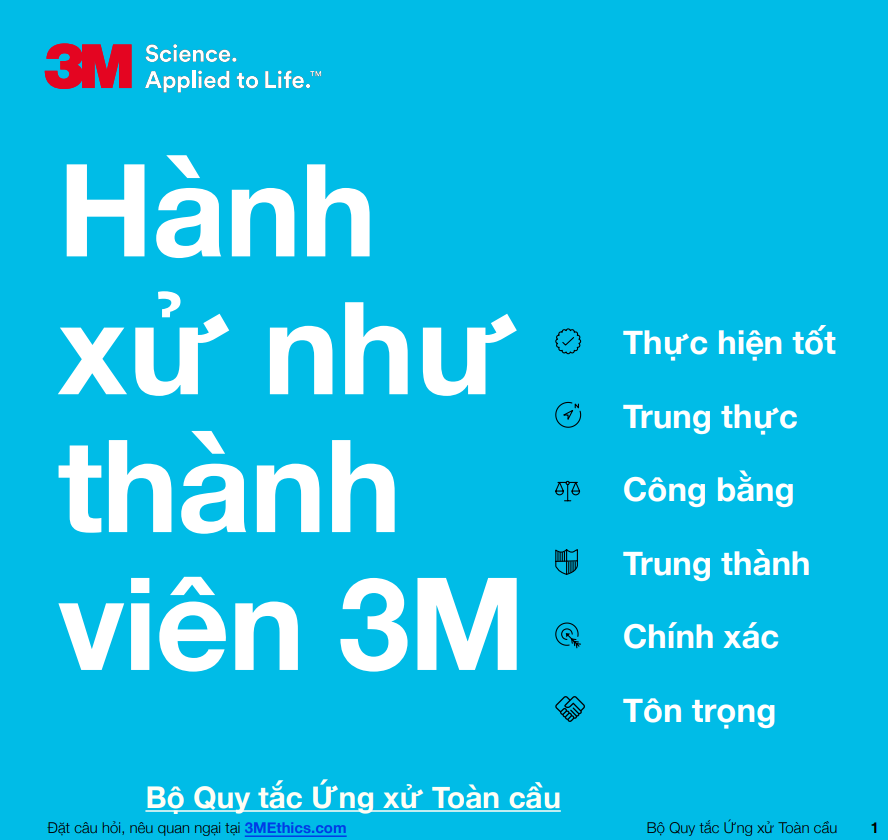 Bộ Quy tắc Ứng xử được công bố trên website của 3M và dịch ra 21 ngôn ngữ, trong đó có tiếng Việt.