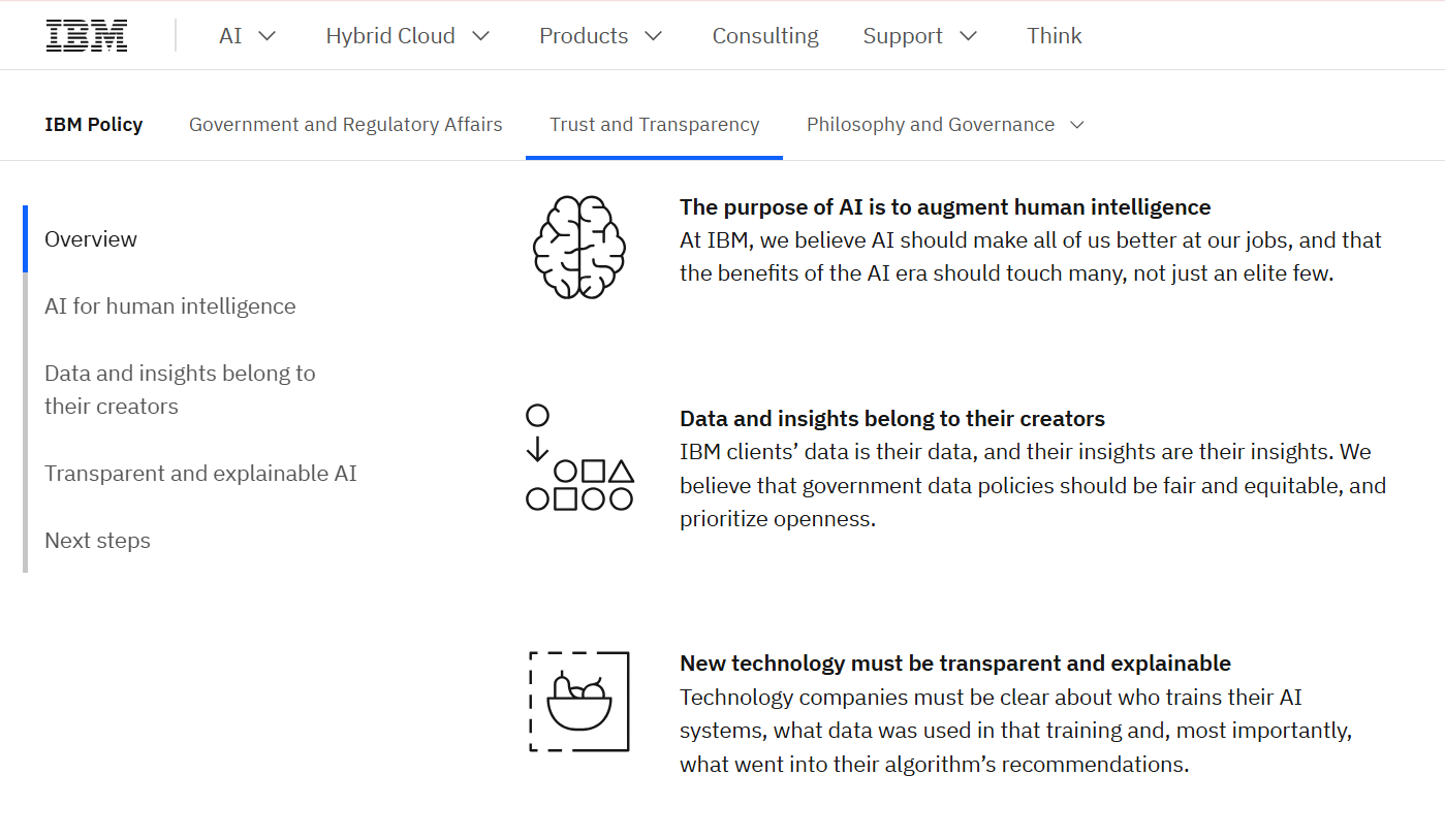 Bộ nguyên tắc về sự tin cậy và minh bạch khi sử dụng AI được công khai trên website của IBM