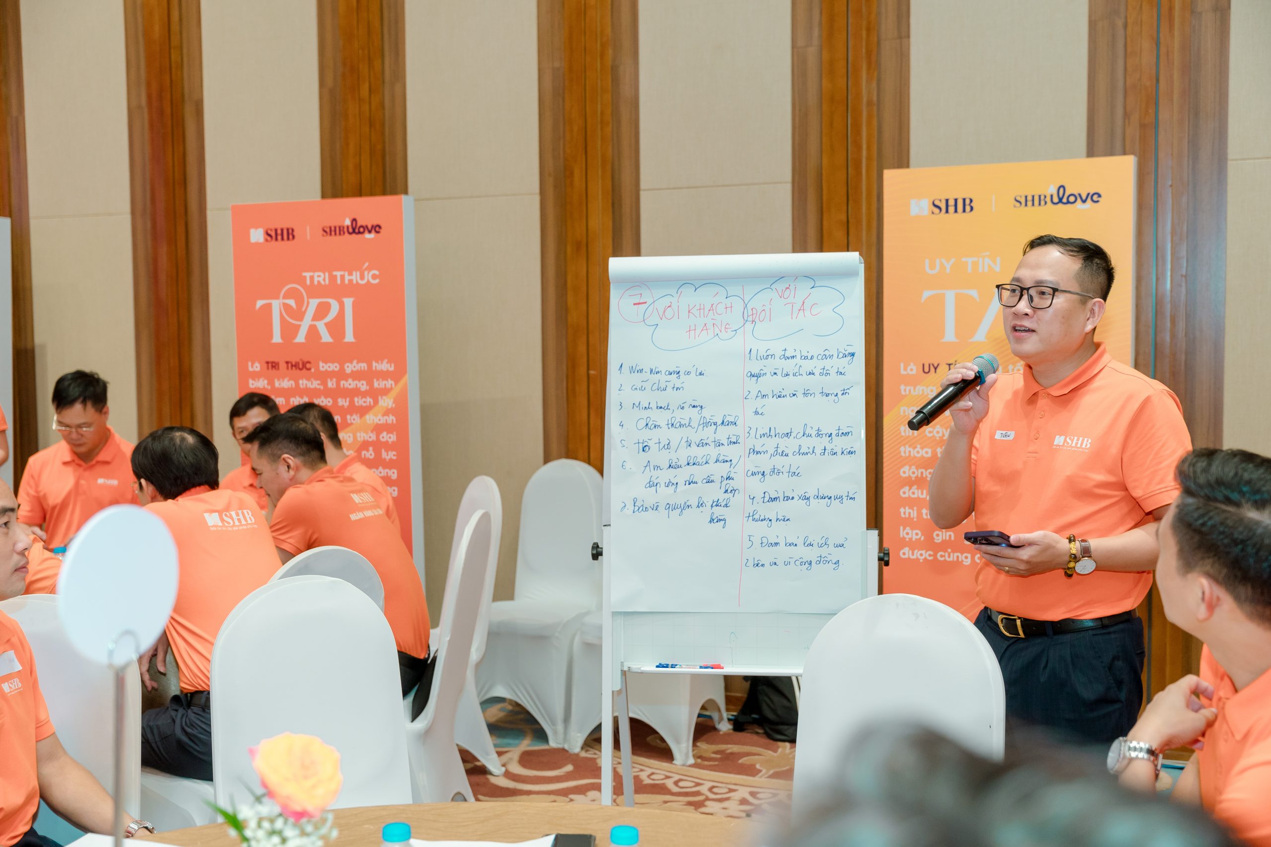 Hội thảo kéo dài trong 2 phiên làm việc sáng và chiều được dẫn dắt bởi chuyên gia Lê Quang Vũ – CEO Blue C, tập trung vào thảo luận về các chuẩn hành vi theo 6T và các quy tắc ứng xử của ngân hàng SHB với các đối tượng liên quan.