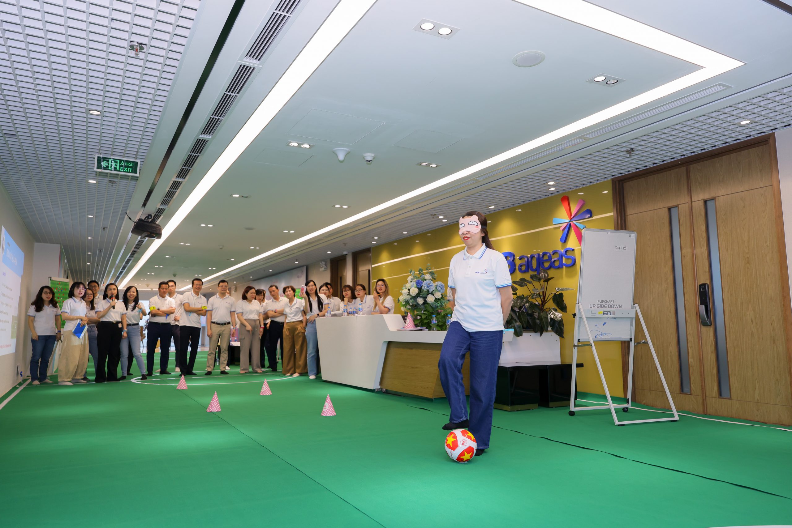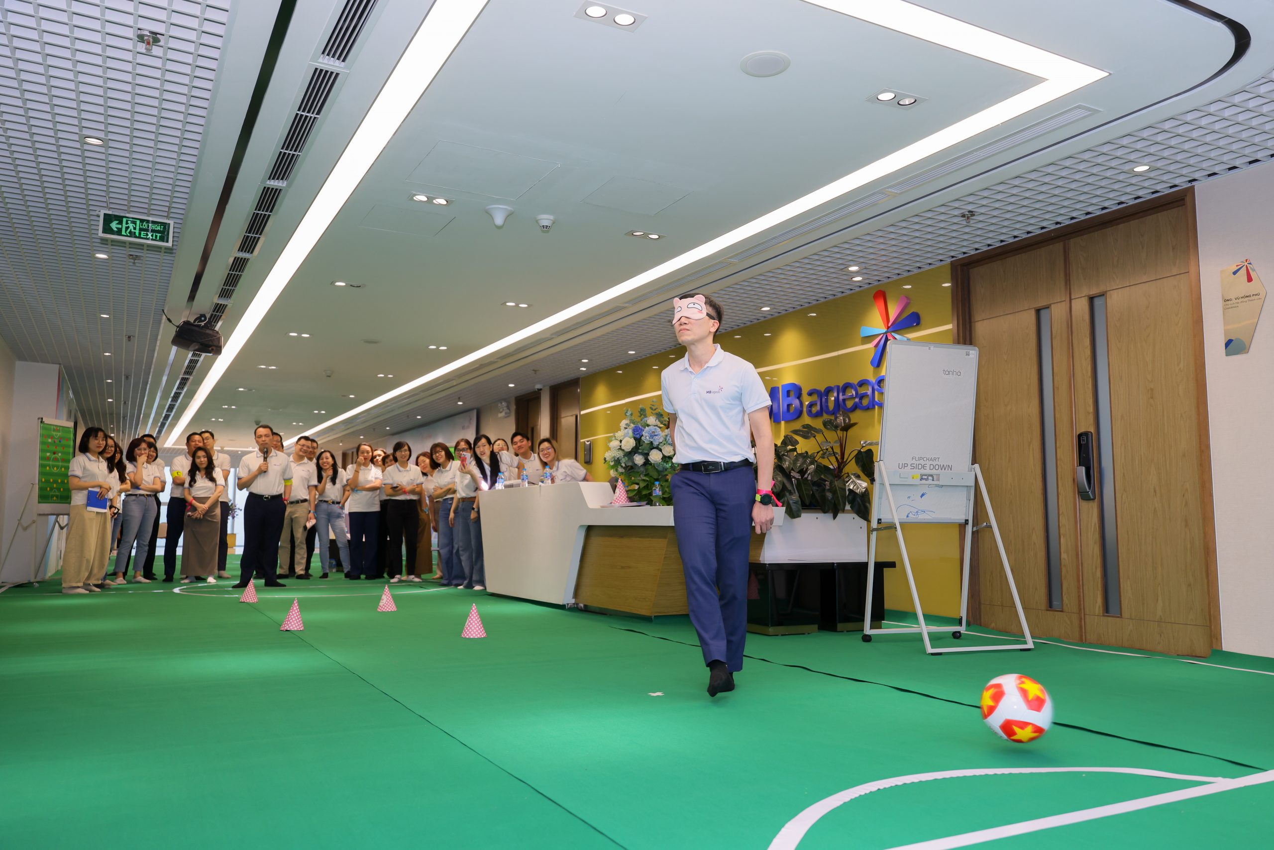 Minigame “Bịt mắt đá phạt” mang đến trải nghiệm thực tế về Minh bạch và Tin cậy – khi không nhìn thấy, người sút bóng cần phải tin tưởng đồng đội hướng dẫn, cũng như cách mỗi cá nhân trong doanh nghiệp cần sự minh bạch và tin cậy để cùng đạt được mục tiêu.